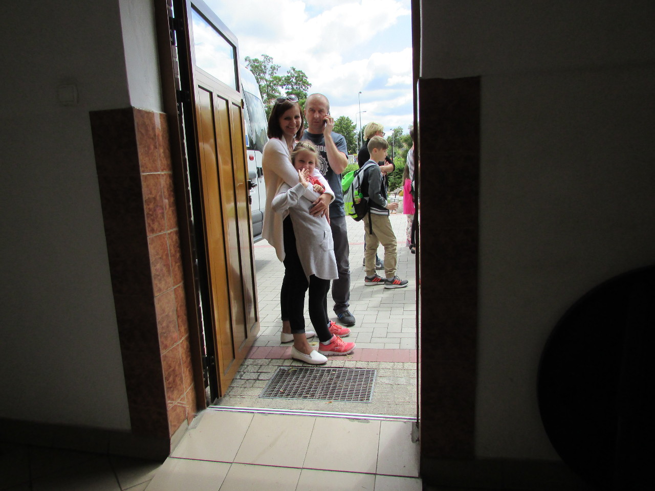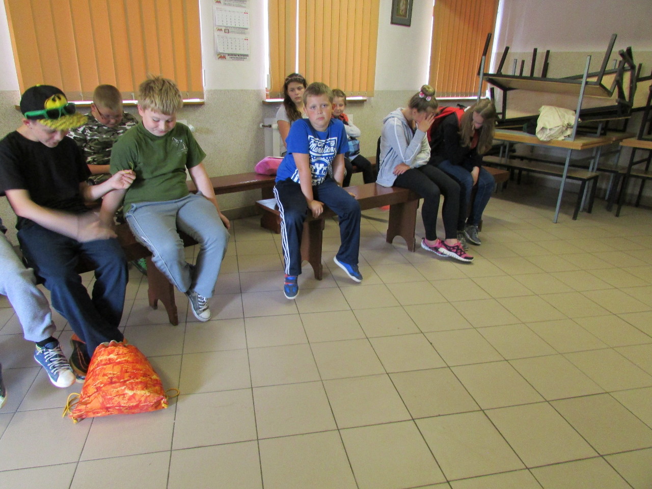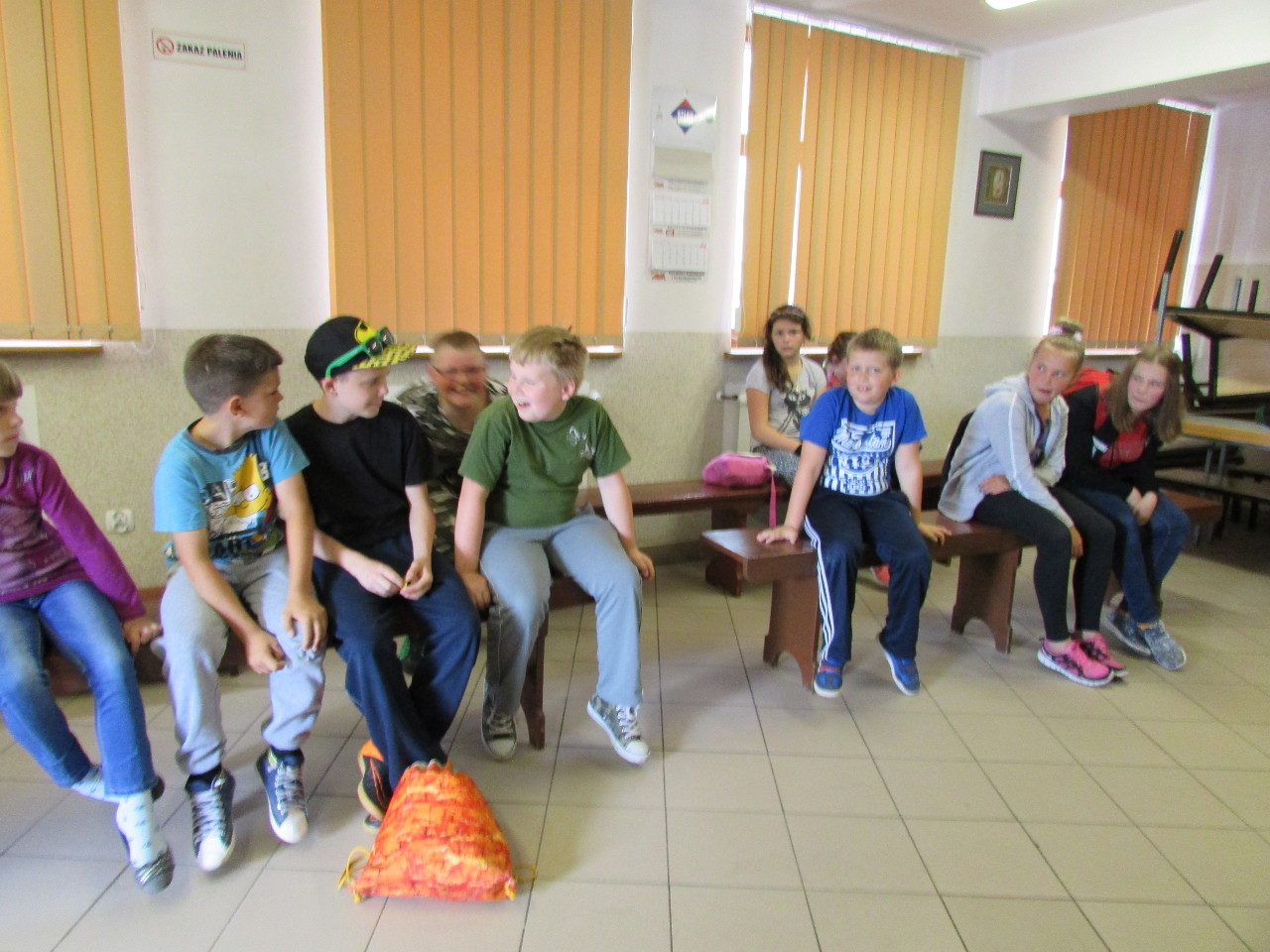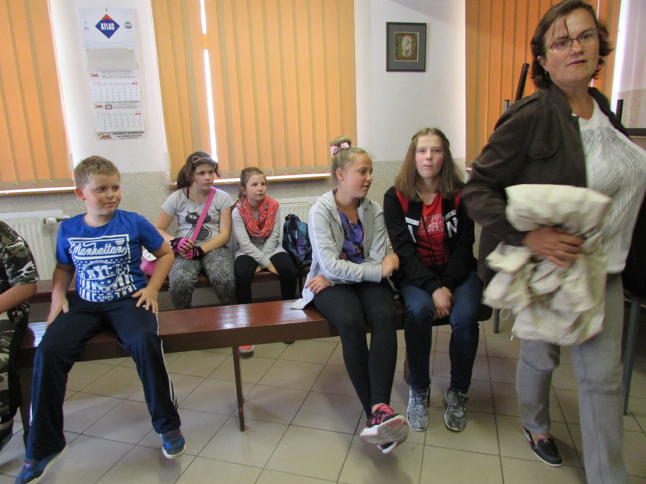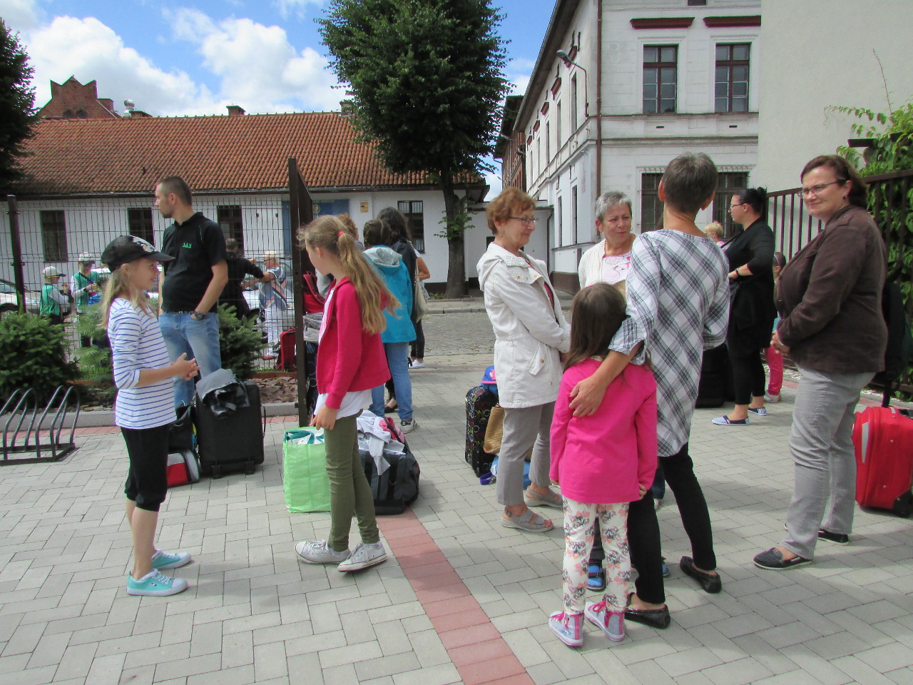 Lato 2016 roku było upalne. Dzieci z obu sztumskich parafii, w siedzibie Caritas Diecezji Elbląskiej, oczekują na przyjazd autobusu.